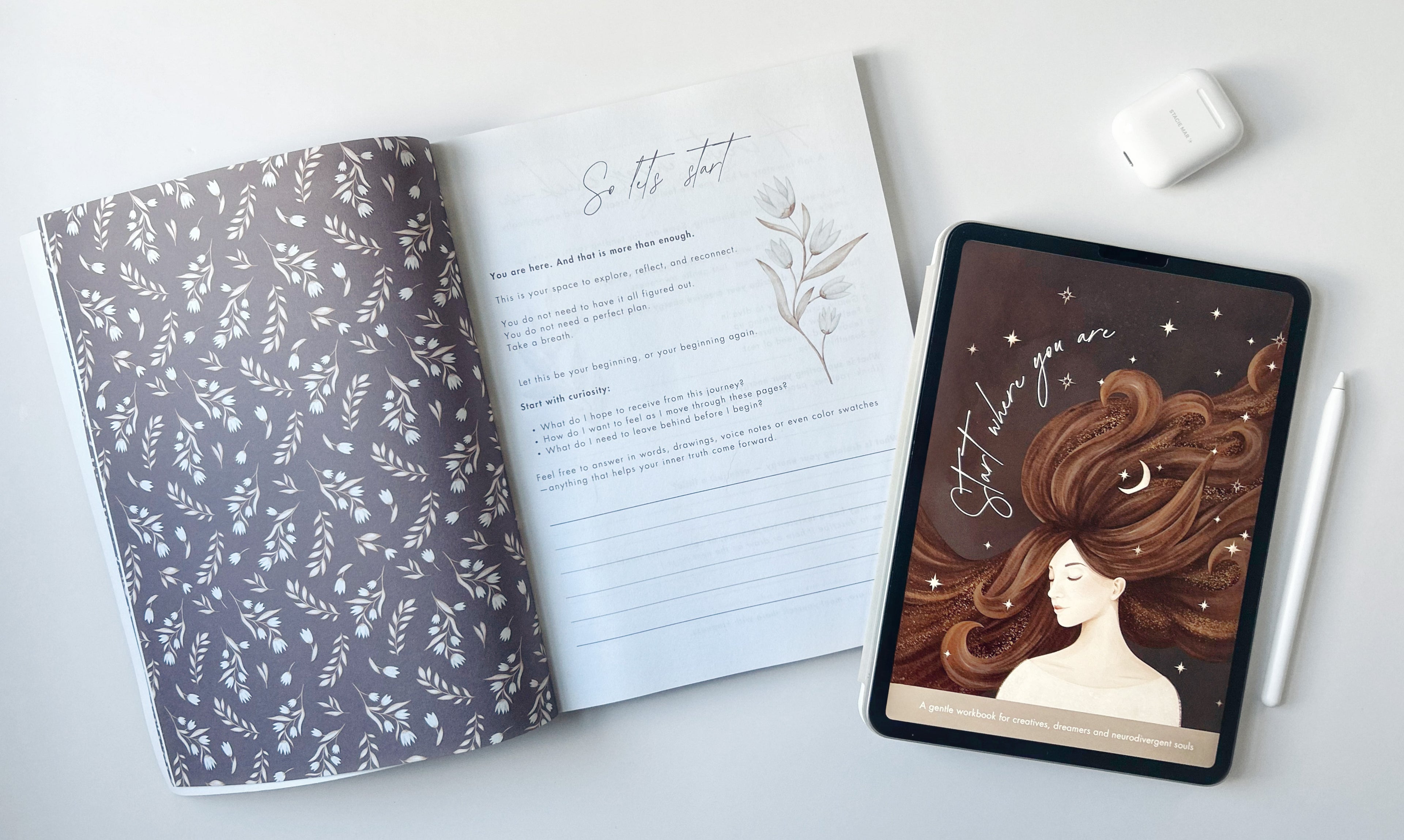 This workbook was created with you in mind — sensitive creatives, neurodivergent artists, dreamers who want to build something meaningful without pressure or burnout.