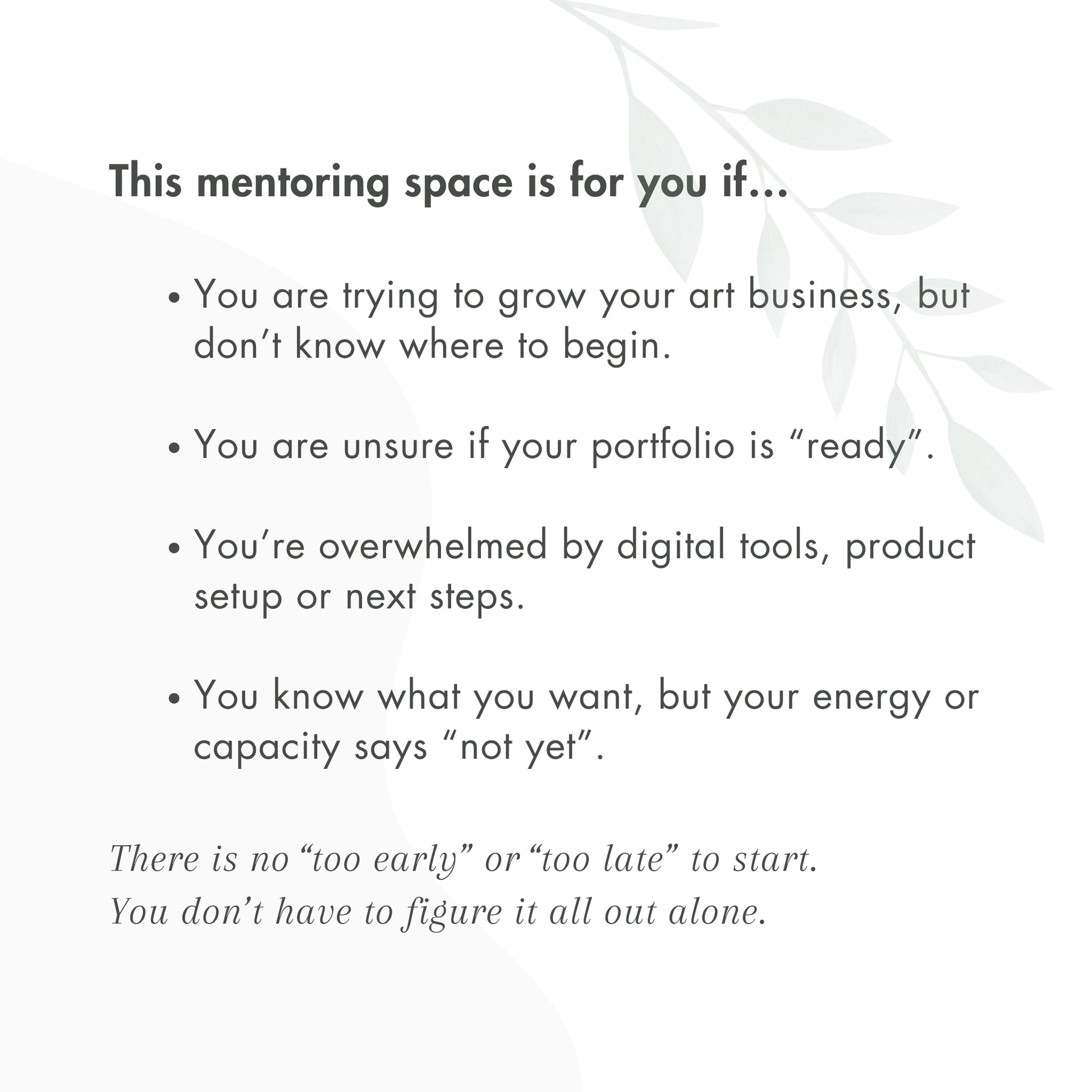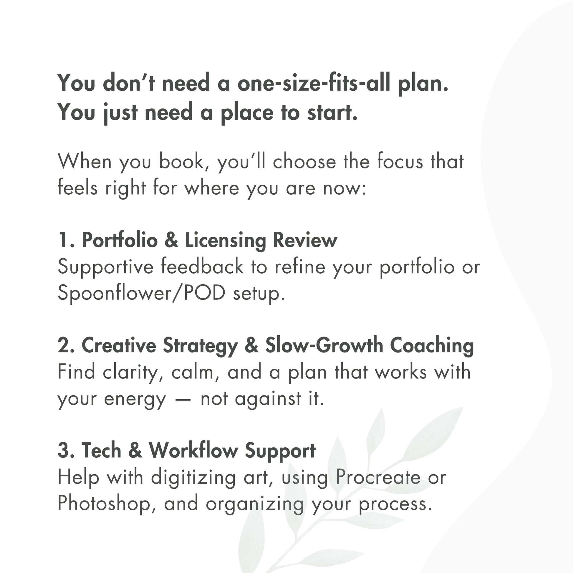 Bring your digital or traditional workflow and let’s walk through it together. Whether it’s Procreate, Photoshop, scanned watercolor art or setting up your POD products, I’ll help you refine what’s already working — and shift what’s not.